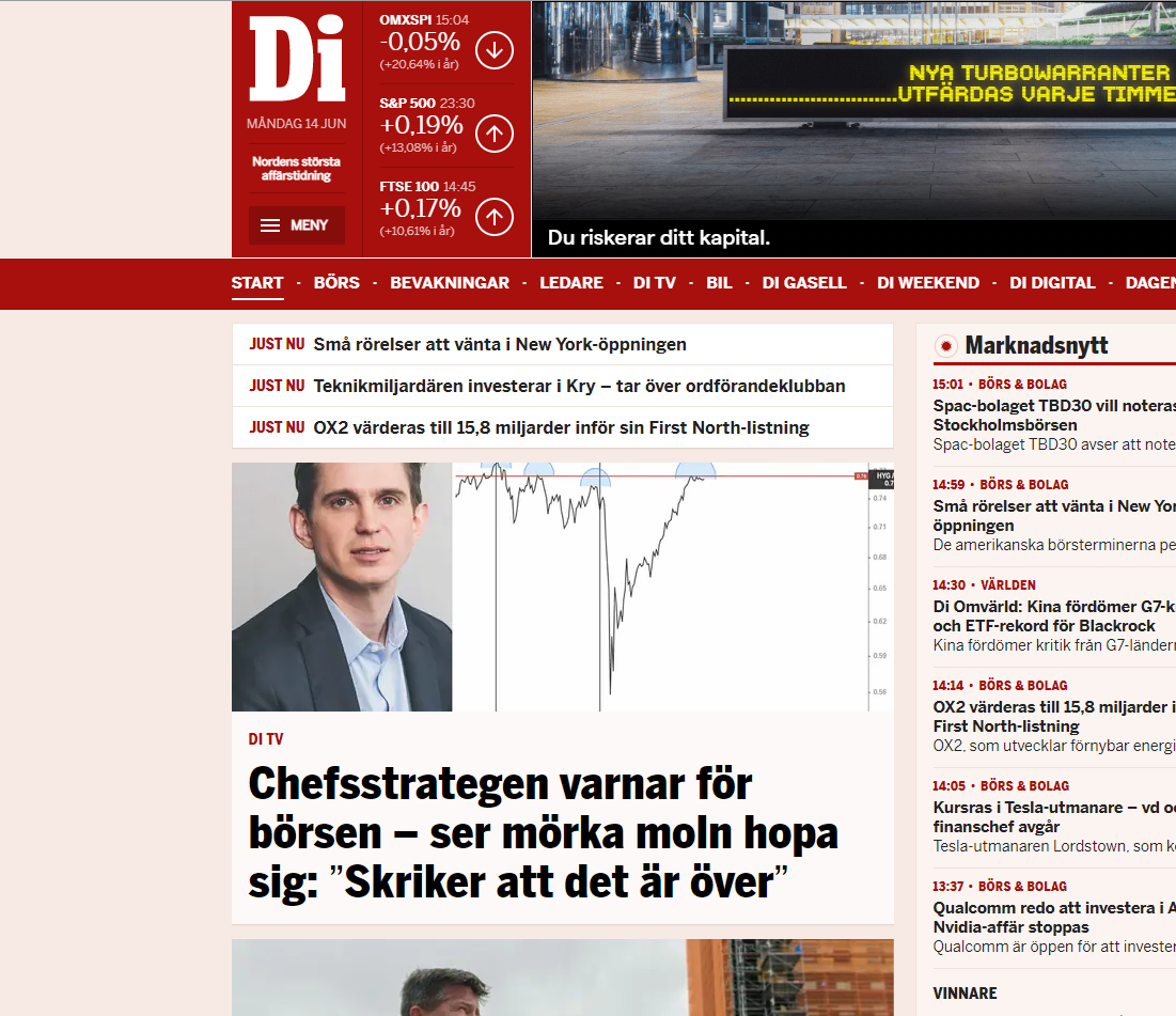 Chefsstrategen varnar för börsen – ser mörka moln hopa sig